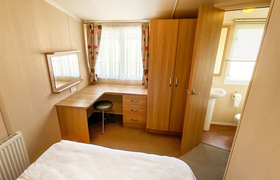 BEDROOMS: Double bedroom with double bed, fitted wardrobes, vanity area, room for a travel cot and access to the en-suite toilet.