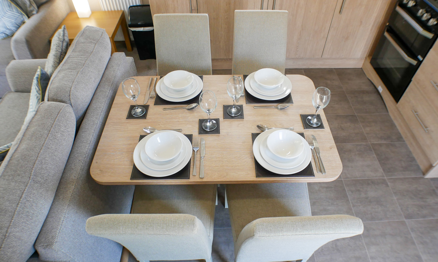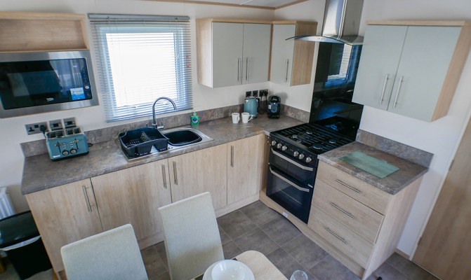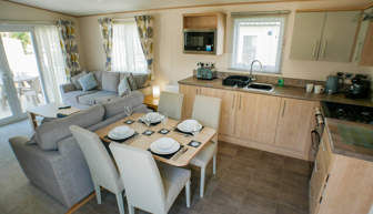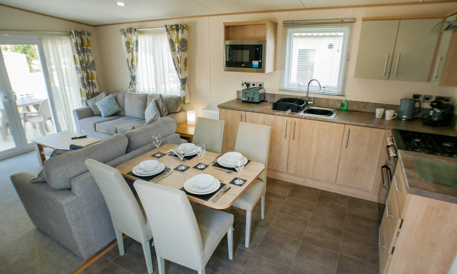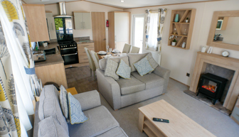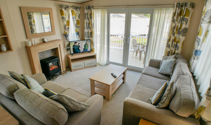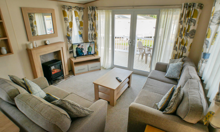 LOUNGE: Open plan with fixed seating, TV with Freeview and DVD player, USB point and fireplace. An occasional pull-out sofa bed is available for those extra guests. H79 can sleep a maximum of 6 guests.