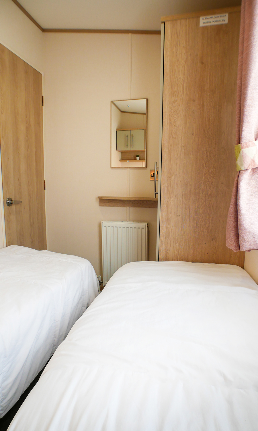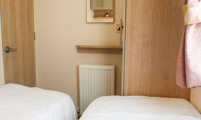 One twin room with 2 single beds, fitted wardrobe, usb socket and radiator.