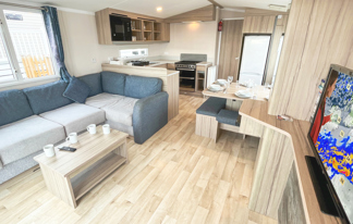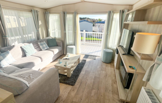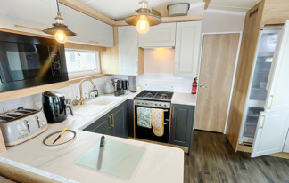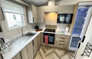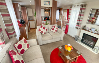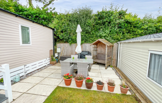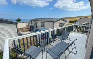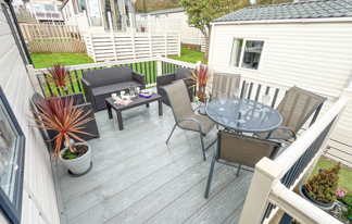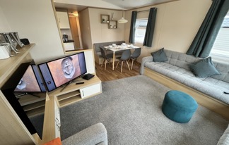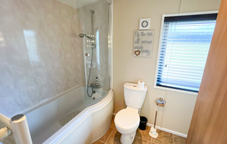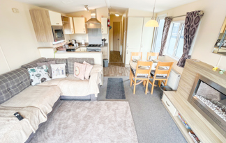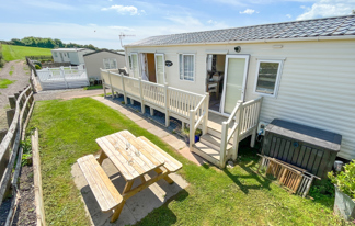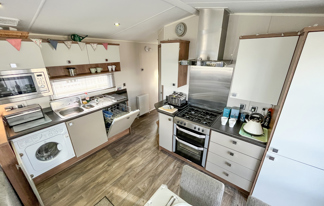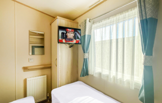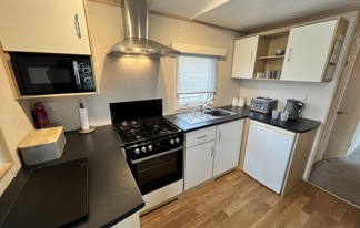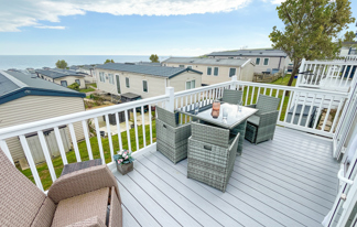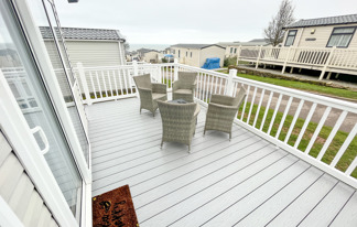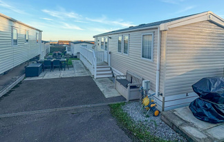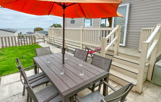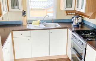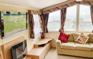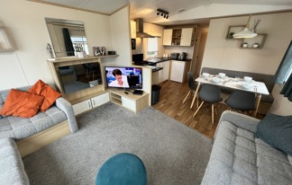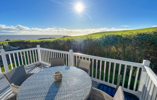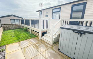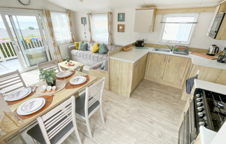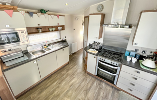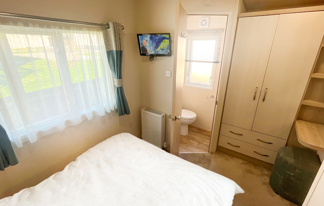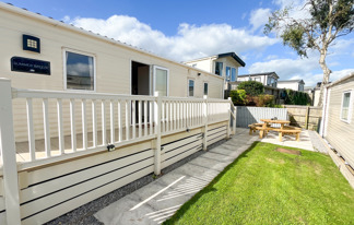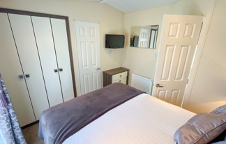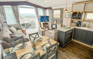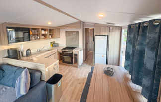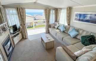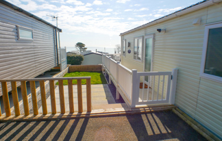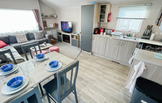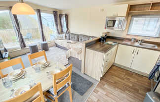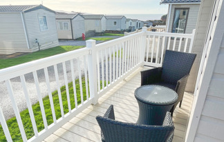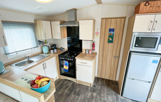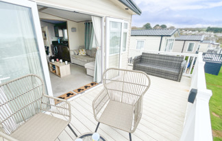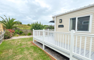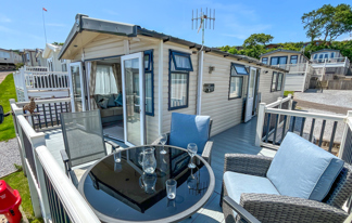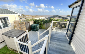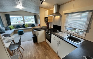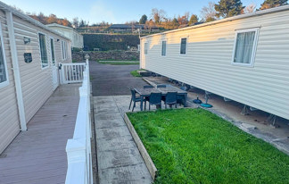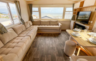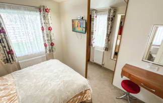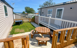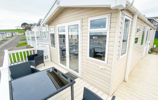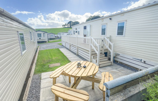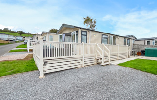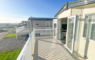 This holiday home features a veranda with lovely sea views, a patio area, and French doors for a bright, open feel. Includes double glazing, central heating, and a main bedroom with an en-suite toilet and space for a travel cot. Offers Wi-Fi access, a full-size fridge-freezer, allocated parking, and comfortably sleeps up to six guests.