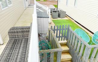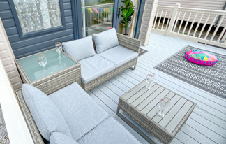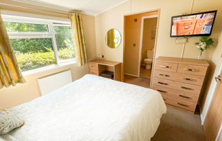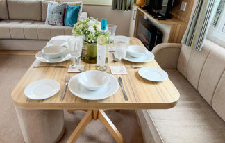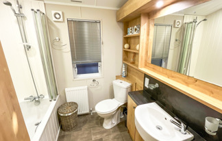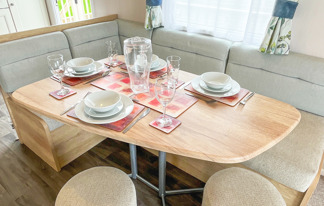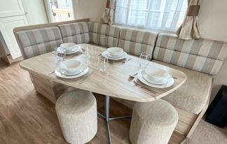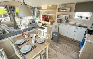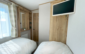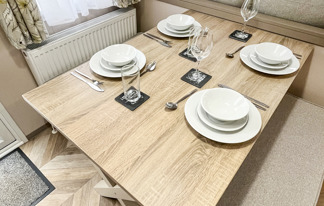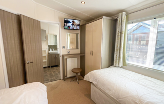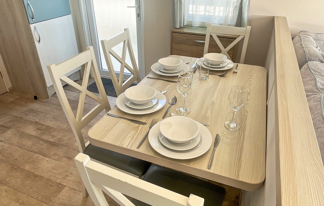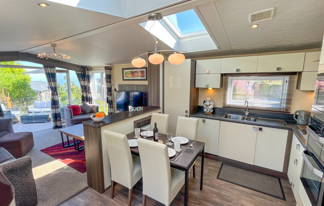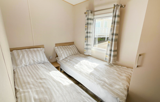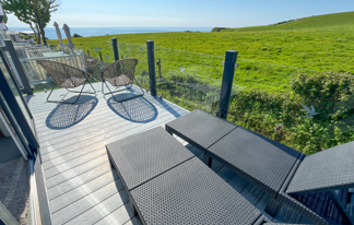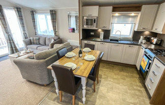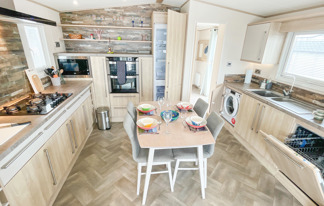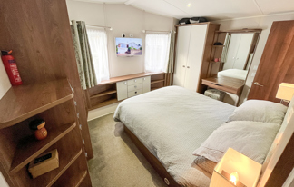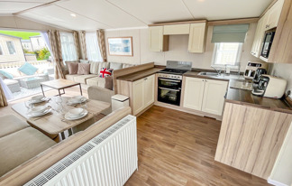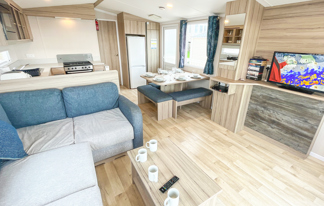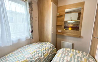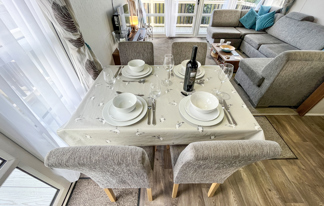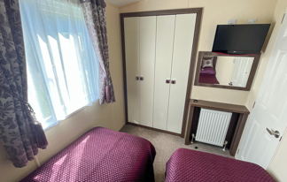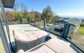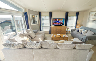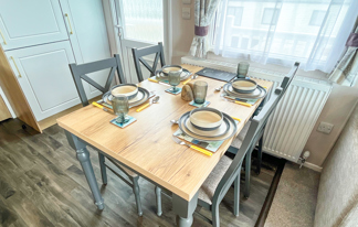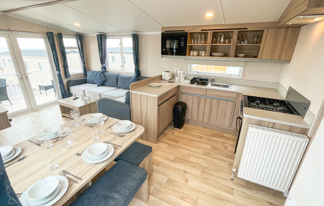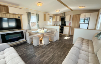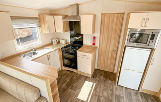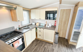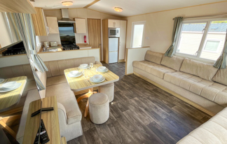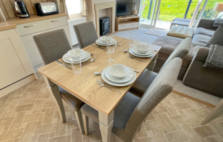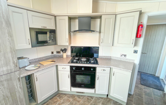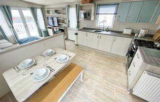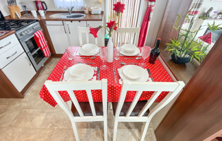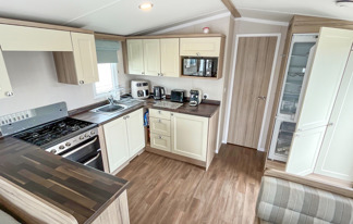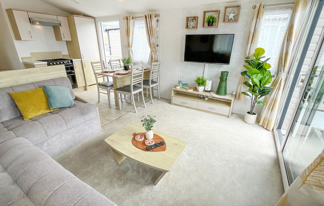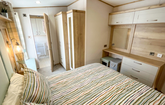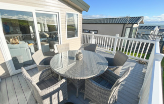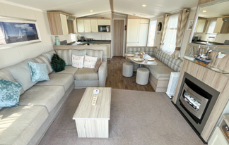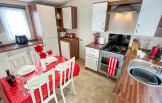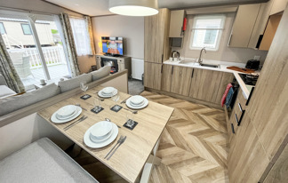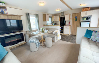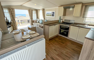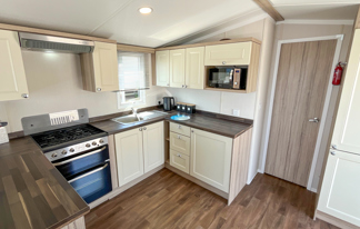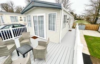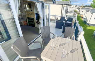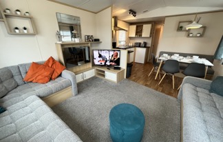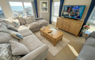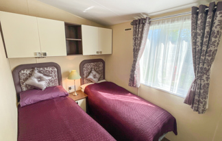 This holiday home features a veranda with lovely sea views, a patio area, and French doors for a bright, open feel. Includes double glazing, central heating, and a main bedroom with an en-suite toilet and space for a travel cot. Offers Wi-Fi access, a full-size fridge-freezer, allocated parking, and comfortably sleeps up to six guests.