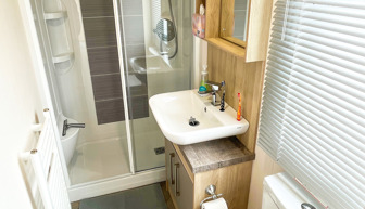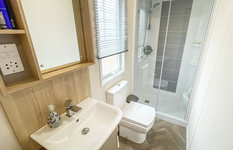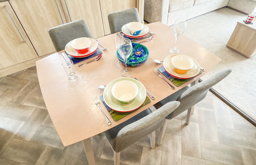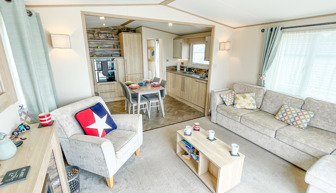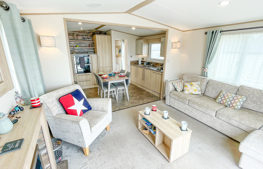 LOUNGE: Open plan design, freestanding sofa seating to cater for all the family, built in cabinets with 43” flat screen TV and electric fire. C46 allows a maximum of 4 guests.