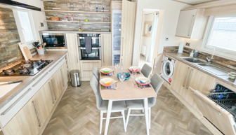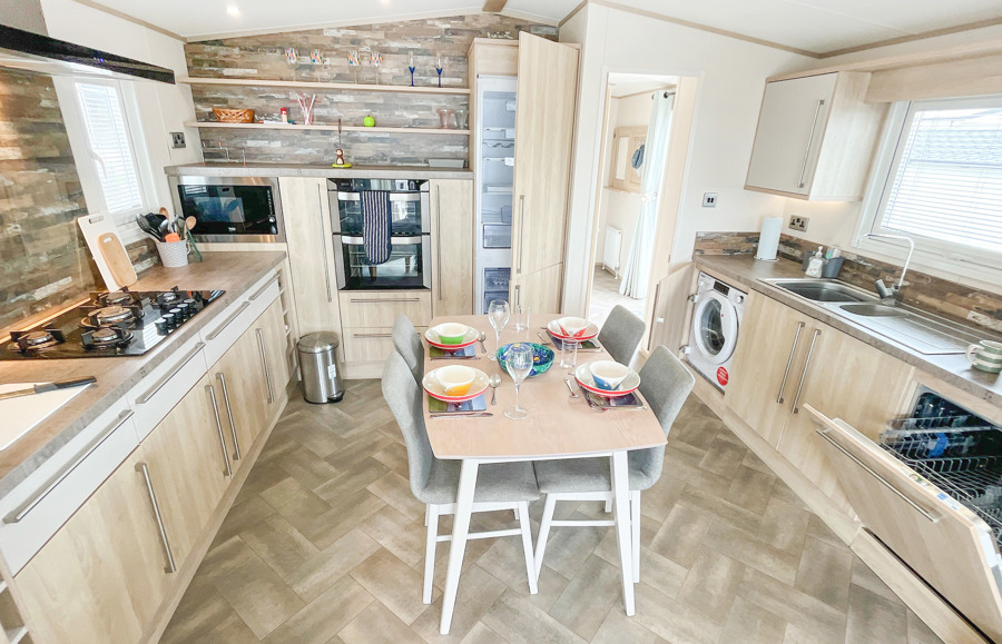 KITCHEN & DINING AREA: The kitchen is fully equipped which includes built-in appliances. A double oven, full size fridge-freezer, microwave, dishwasher and washing machine. The dining area is situated in the middle of the kitchen with freestanding seating for additional comfort.