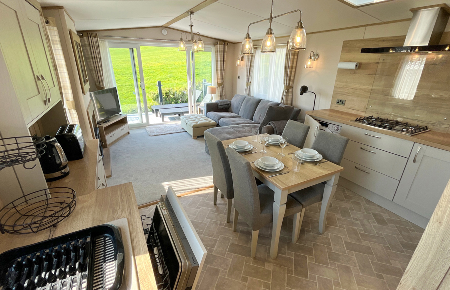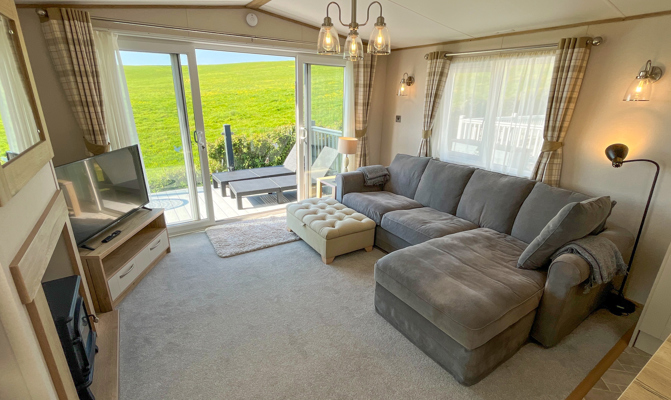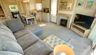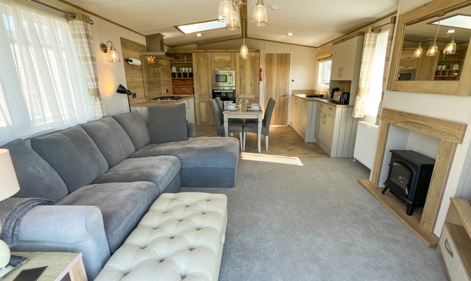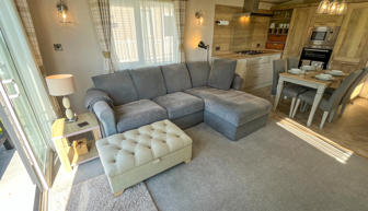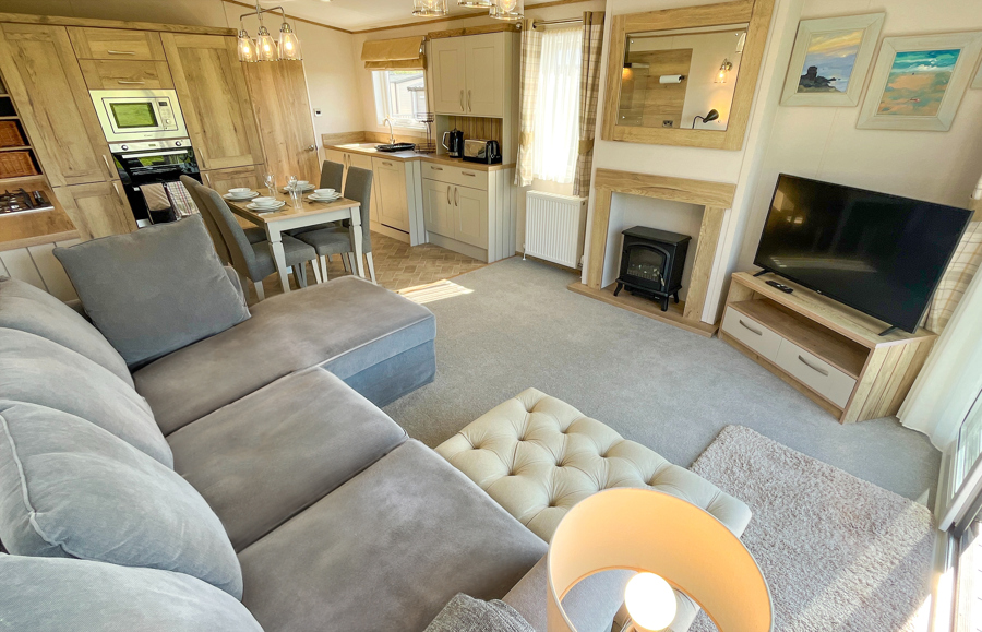 LOUNGE: Open plan design, freestanding sofa seating to cater for all the family, built in cabinets with flat screen TV and electric fire. D10 allows a maximum of 4 guests.