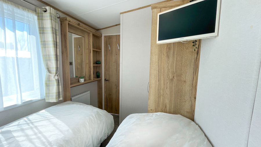 BEDROOMS: This accommodation has two bedrooms. The spacious master consists of a double bed, a fitted wardrobe with a vanity area and en-suite with a shower, toilet and hand basin. The twin room includes 2 single beds, wall-mounted tv and small fitted wardrobe.