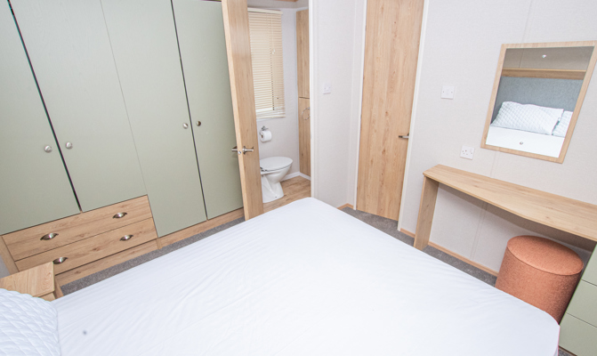 BEDROOMS: Double bedroom, fitted wardrobes, vanity area, room for travel cot and en-suite toilet with hand basin.
