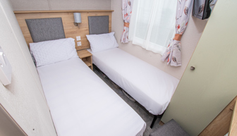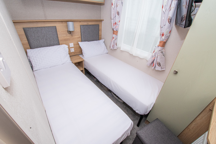 Twin Bedroom: The twin bedroom includes 2 twin beds, overhead storage and small fitted wardrobe. Maximum of 6 guests.