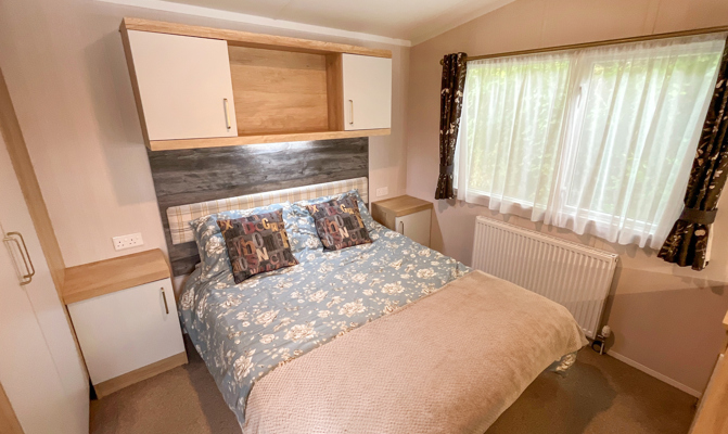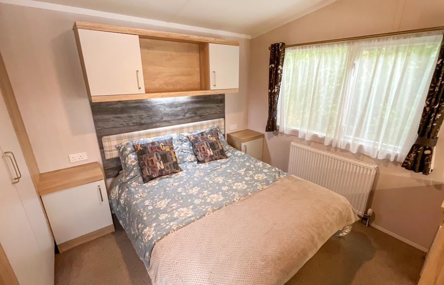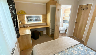 BEDROOMS: Double bedroom, over bed storage, bedside tables, fitted wardrobe, vanity area, room for a travel cot and en-suite toilet with hand basin.