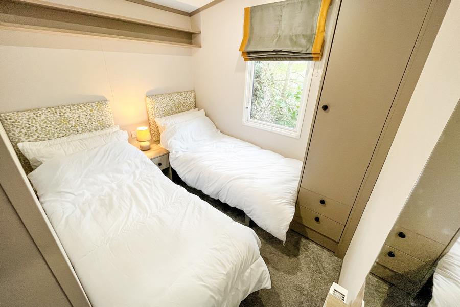 Twin Bedroom: The twin bedroom includes 2 twin beds and small fitted wardrobe. Maximum of 6 guests.