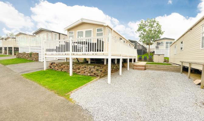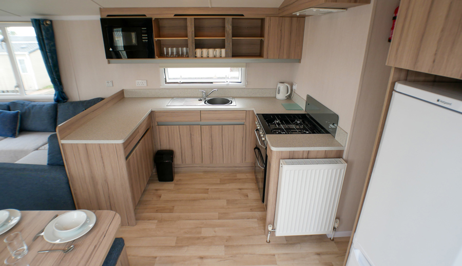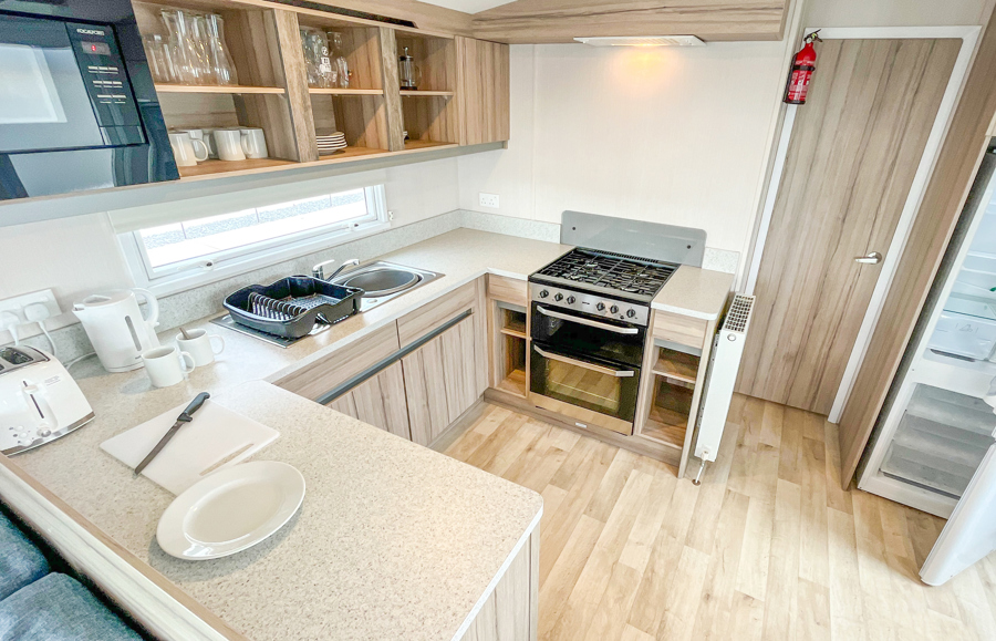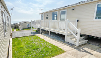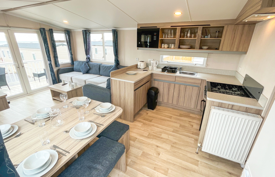 Key features: Gated veranda with sea views, Wi-Fi, French doors, dog friendly, private drive way, open plan design, family shower room, double glazing, central heating, piped gas, modern style kitchen with fridge.