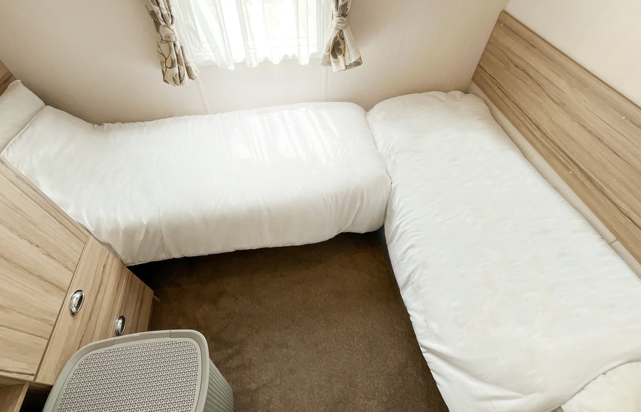 BEDROOMS: The master bedroom includes a double bed, fitted wardrobe, en-suite toilet and hand basin. The twin room includes 2 single beds and small wardrobe.