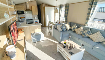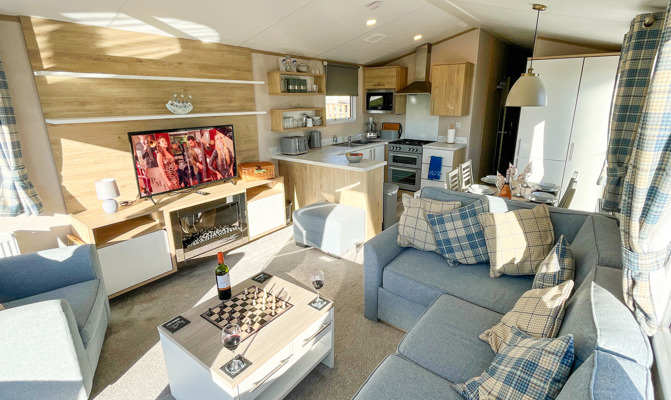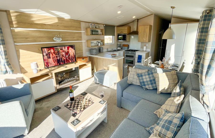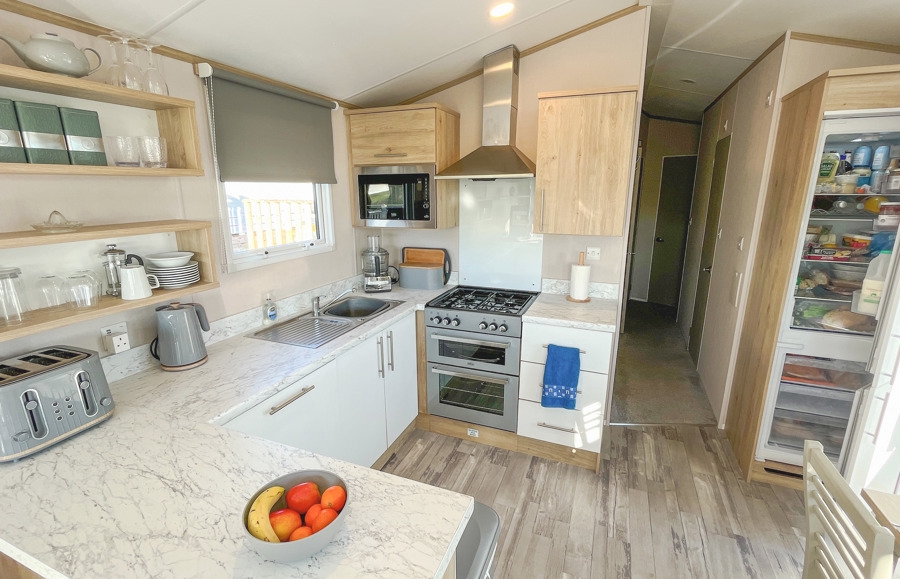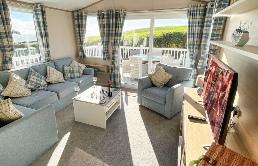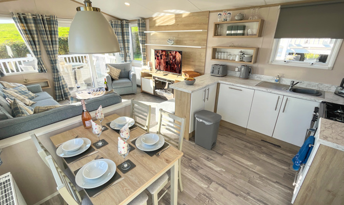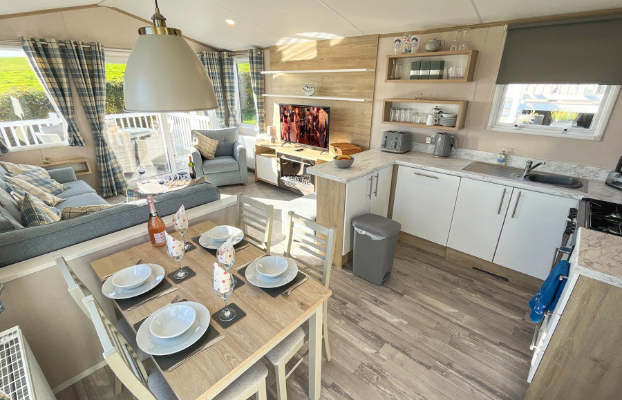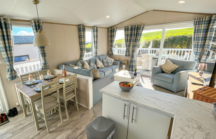 Key features: Gated veranda with sea & countryside views, Wi-Fi, patio doors, private drive way, open plan design, family shower room, dishwasher, separate wc, double glazing, central heating, piped gas, modern style kitchen with fridge freezer.