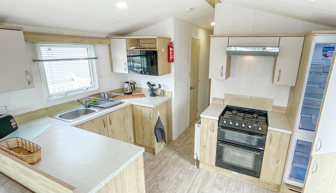 KITCHEN & DINING AREA: A full equipped kitchen furnished with full size fridge freezer, cooker with hob and a microwave. The dining area benefits from free standing table and 4 chairs.