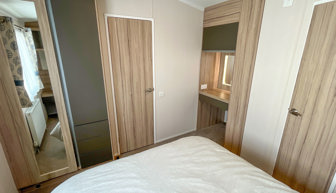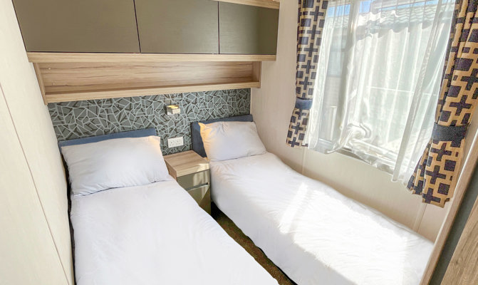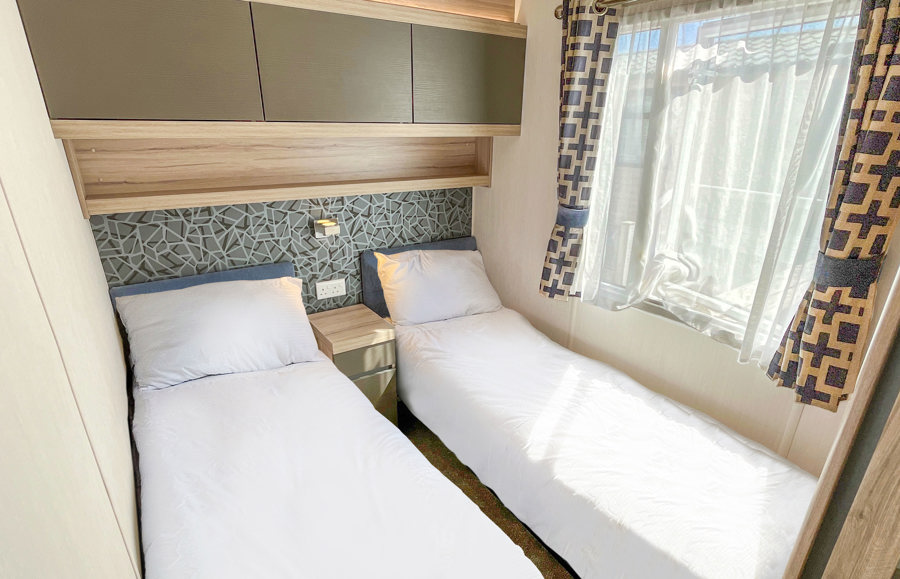 BEDROOMS: This accommodation has 2 bedrooms. The master bedroom includes a king size bed, ensuite shower room, bedside tables, overhead storage, vanity area, fitted wardrobe. The Twin bedroom consists of two single beds, overbed storage and small wardrobe.
