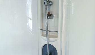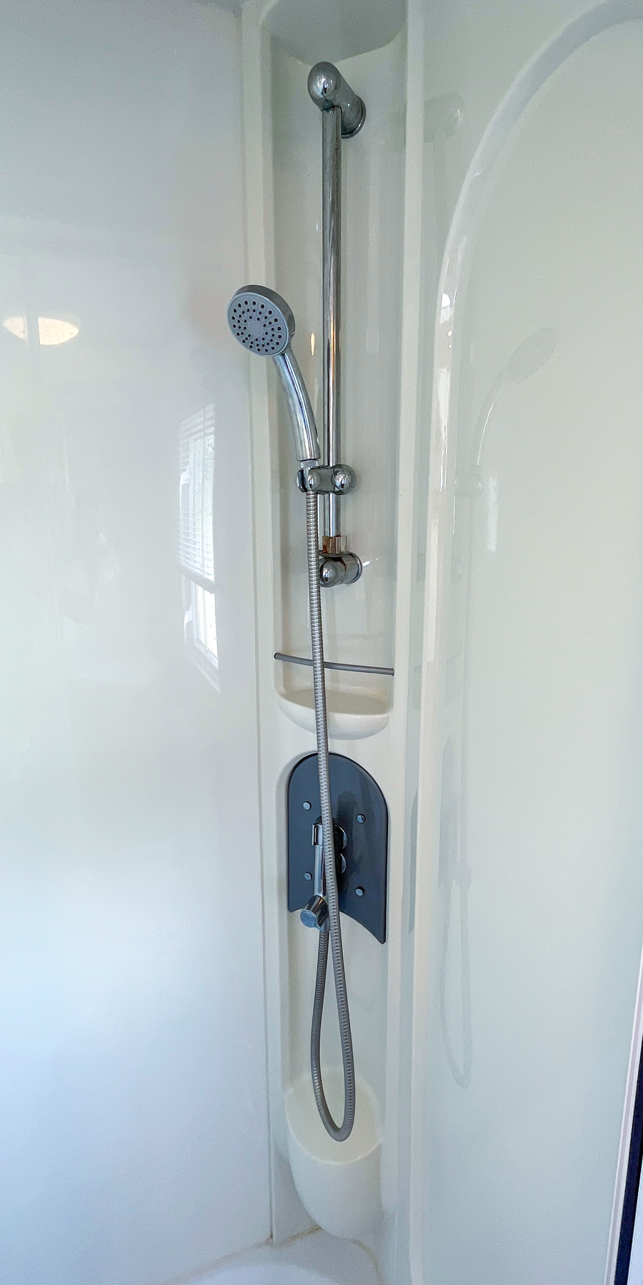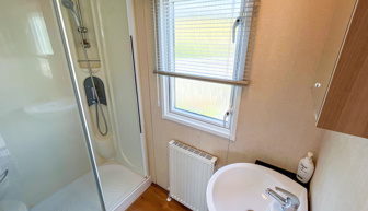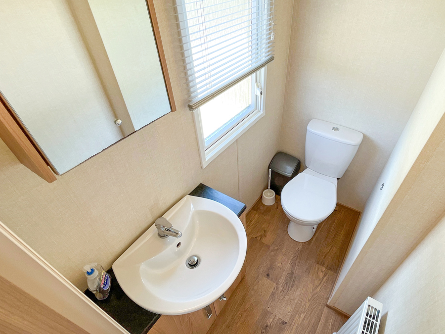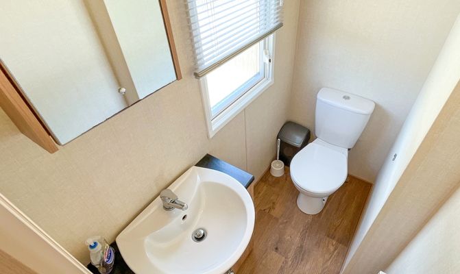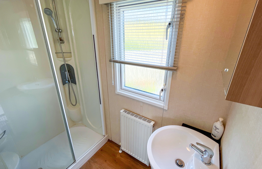BATHROOM & TOILET: Main bathroom fitted with double shower and hand basin. The caravan benefits from a separate toilet and hand basin.