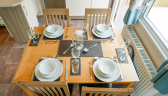 KITCHEN & DINING AREA: Well-equipped kitchen benefits from a gas hob and oven, stainless steel sink, microwave, and full-size fridge-freezer. The dining area comprises of 4 chairs and free-standing dining table.