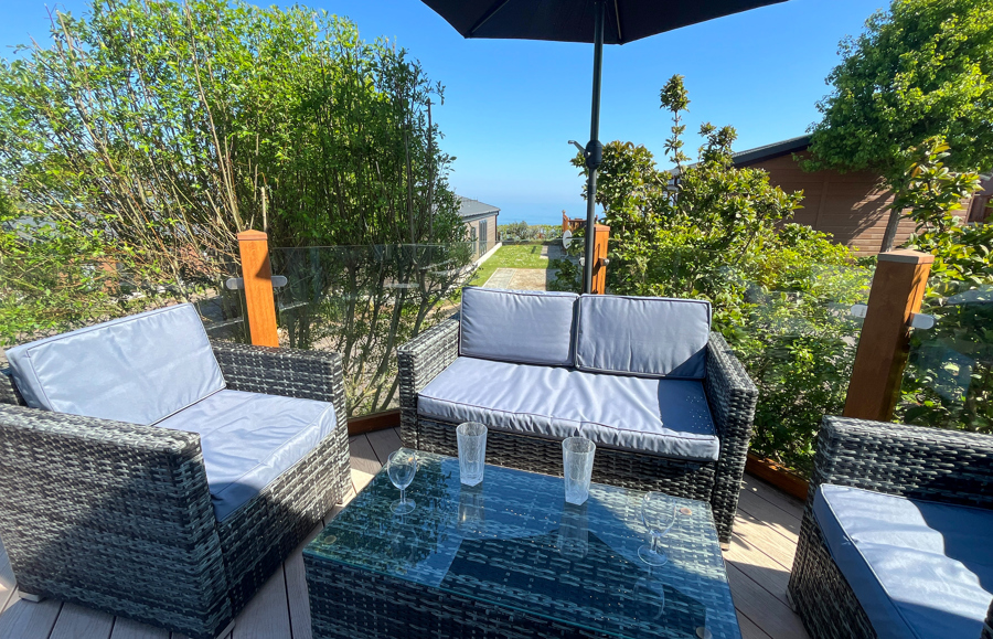 Key features: Veranda, Wi-Fi, patio doors, piped gas, double glazed, central heating, TVs in both bedrooms, room for a travel cot, full size fridge-freezer, bath in Master ensuite, washing machine, dishwasher, partial sea views, private parking, sofa-bed, maximum 6 guests.