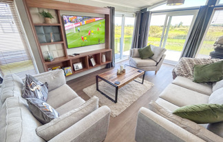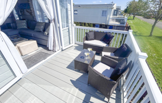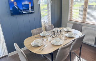 This beautiful property offers a large private drive and patio doors leading onto a spacious veranda. It features Wi-Fi access, TVs in all bedrooms, a washing machine, dishwasher, breakfast bar, and dining area. The master bedroom includes a full en-suite with shower and space for a travel cot, plus a family bathroom with a full-size bath.