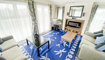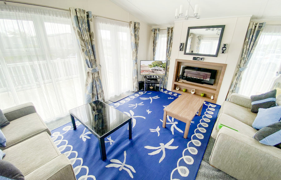 LOUNGE: Beautifully designed and furnished lounge with access to large veranda through the patio doors. The lounge is spacious with vaulted ceilings and fully equipped with flat screen TV and electric fire.