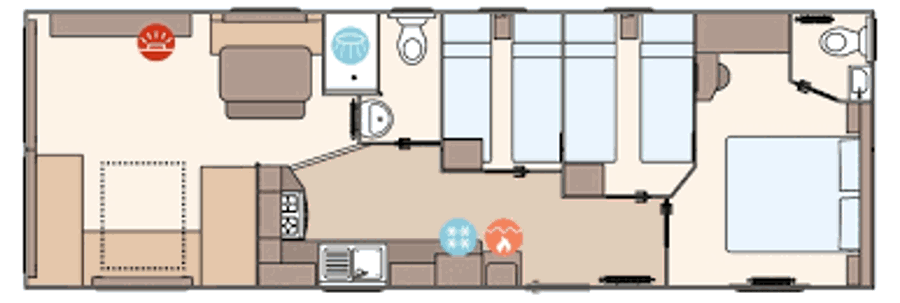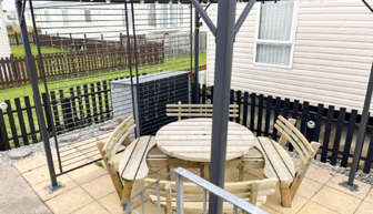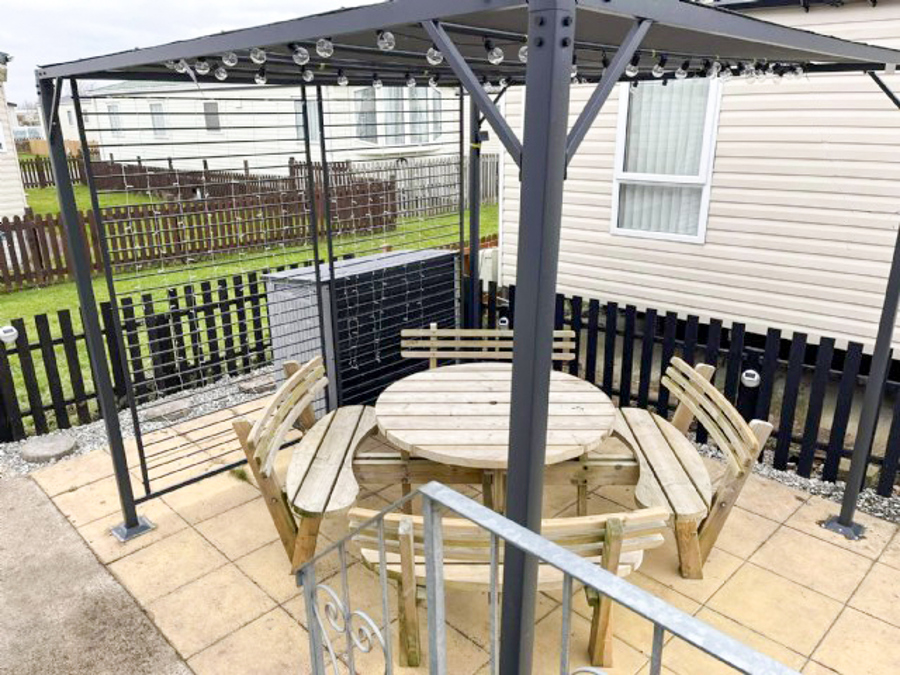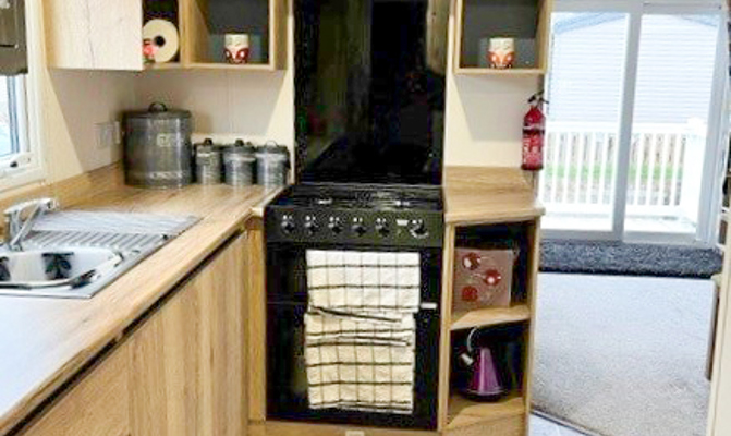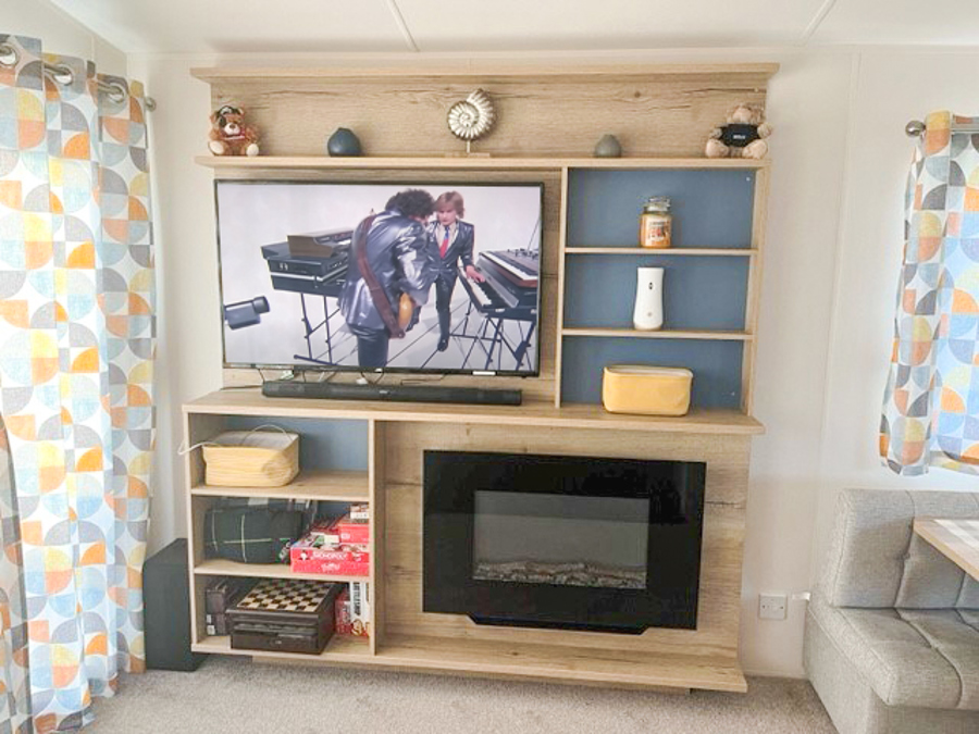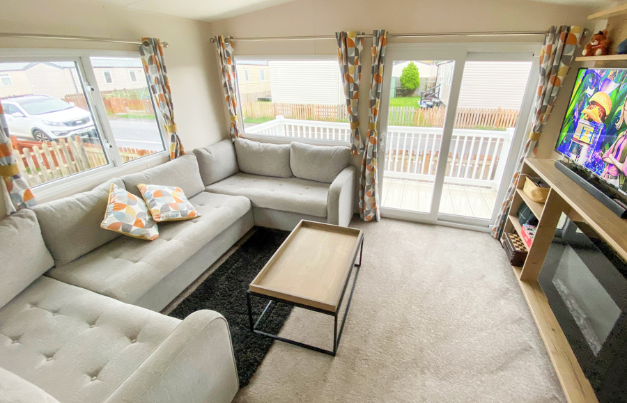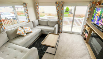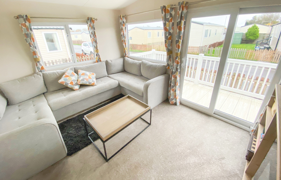 LOUNGE: The comfortable lounge incorporates fixed seating, flat screen TV, Freeview and patio doors leading on to the veranda. The seating also has an occasional pull-out bed for additional guests. Maximum of 8 guests.