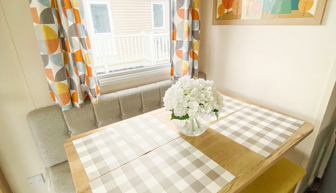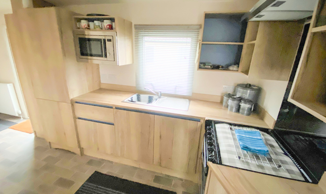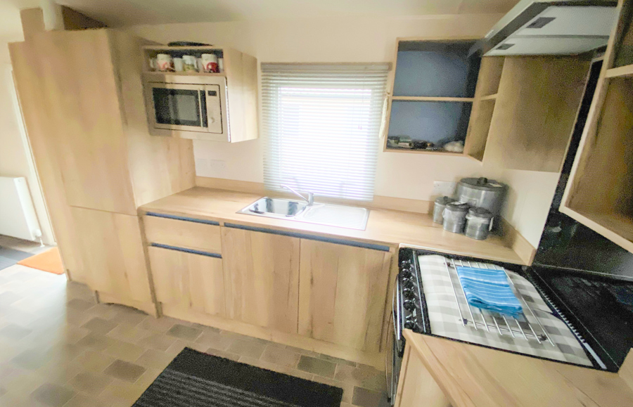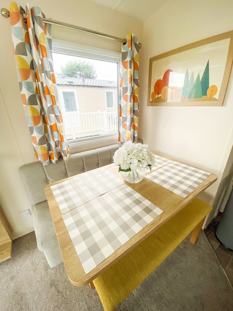 KITCHEN & DINING AREA: The well-appointed kitchen with appliances to include full size integrated fridge/freezer, microwave, hob and cooker. The dining area benefits from bench style seating.