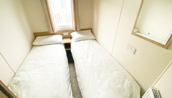 BEDROOMS: 414 has three bedrooms; one double with fitted wardrobe and bedside cabinets, en-suite toilet and wash basin. The two twin bedrooms include small, fitted wardrobes and bedside tables.