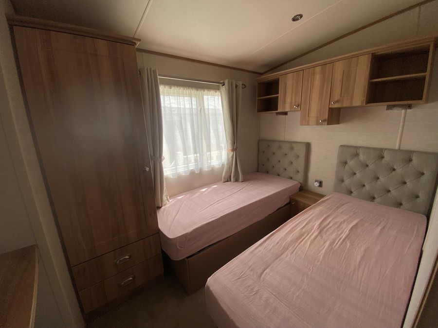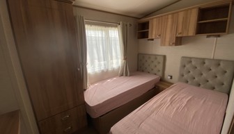 BEDROOMS: The master bedroom is spacious with double bed, vanity area and fitted wardrobe. The second bedroom is also includes twin beds that can be pushed together to form a double bed, with overhead storage and small wardrobe. The twin room includes 2 single beds, small wardrobe, and bedside cabinet.