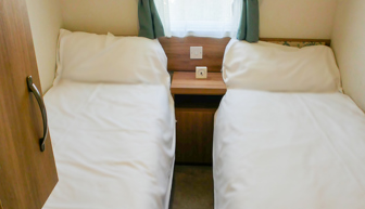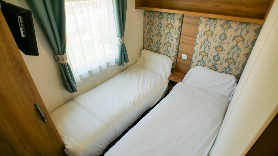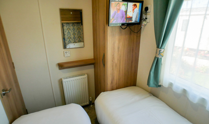 Please note Twin 1 has a wall-mounted TV, Twin 2 does not.