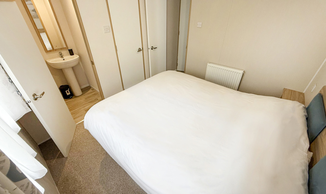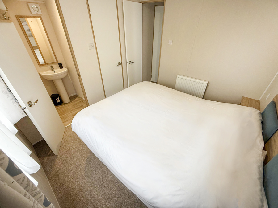 BEDROOMS: Double bedroom, walk in wardrobe and en-suite toilet with hand basin. The second bedroom also includes a double bed and small fitted wardrobe. Maximum of 6 guests.