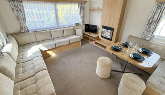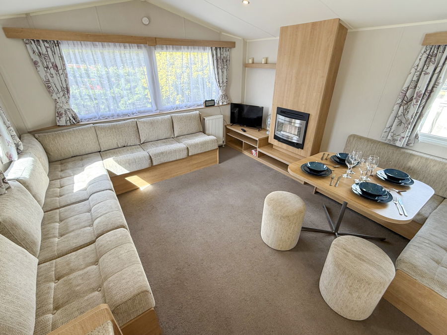 LOUNGE: The lounge incorporates ample fixed seating with flat screen TV, Freeview and gas fireplace. Occasional pull out bed is available for extra Guests. Maximum 8 guests.