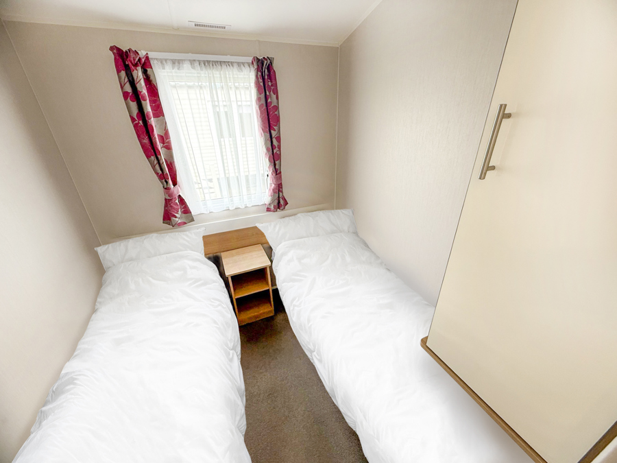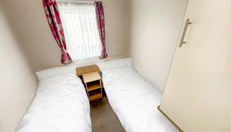 BEDROOMS: This accommodation has three bedrooms. One double bedroom with fitted wardrobe and two twin rooms fitted with small wardrobes. There is also an pull-out sofa bed in the Lounge, for additional Guests. Maximum 8 Guests.