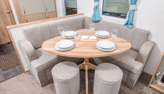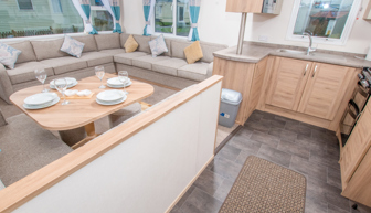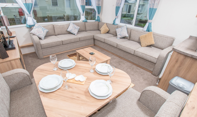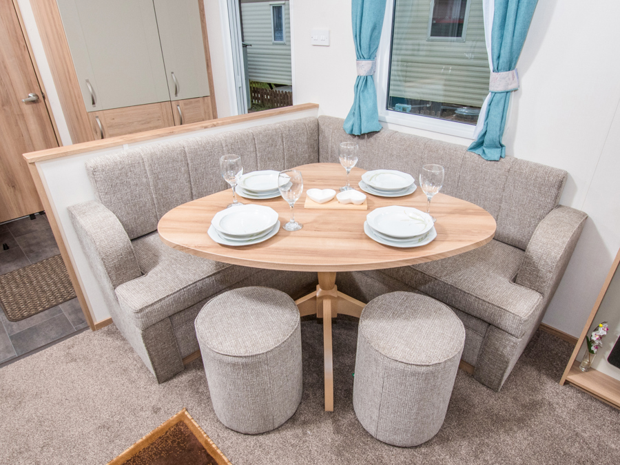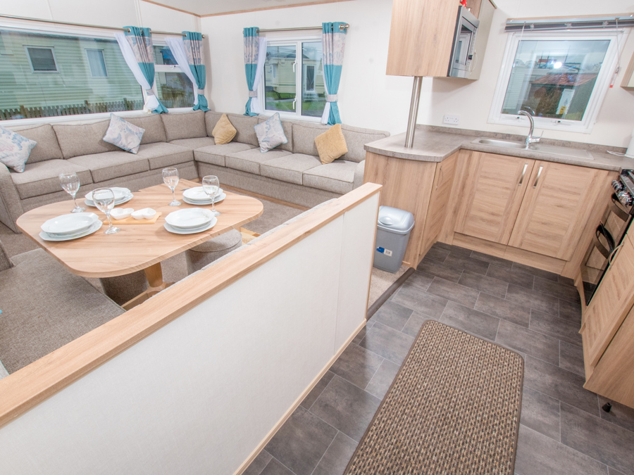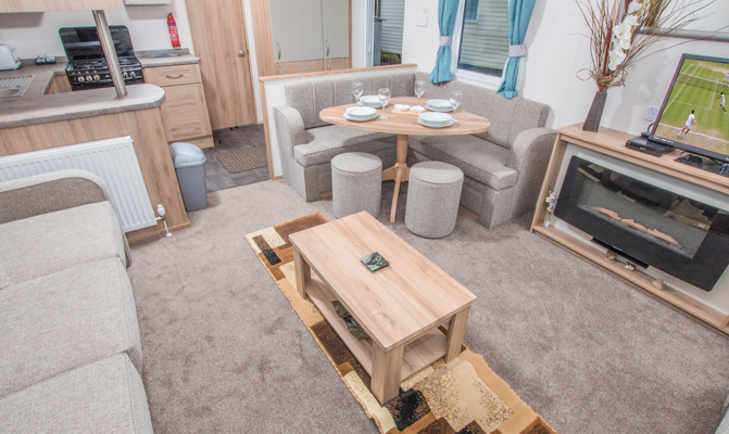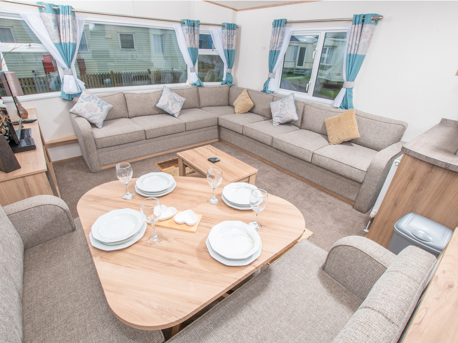 LOUNGE: This holiday home benefits from comfortable open-plan lounge furnished with comfortable fixed seating. The lounge also benefits from LCD TV and TV.