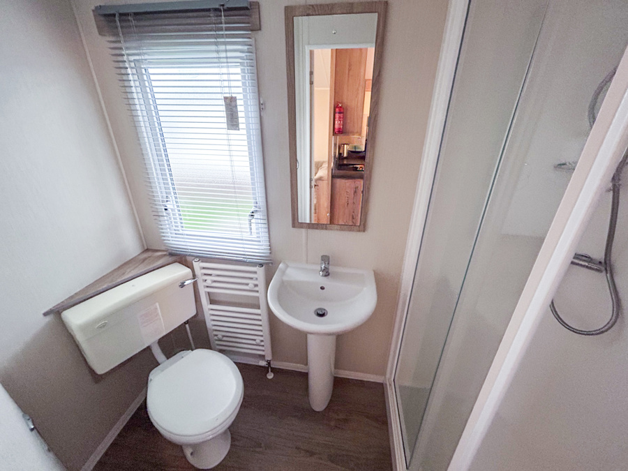 BATHROOM & TOILET: The bathroom has a single shower, toilet, wash basin and heated towel rail.