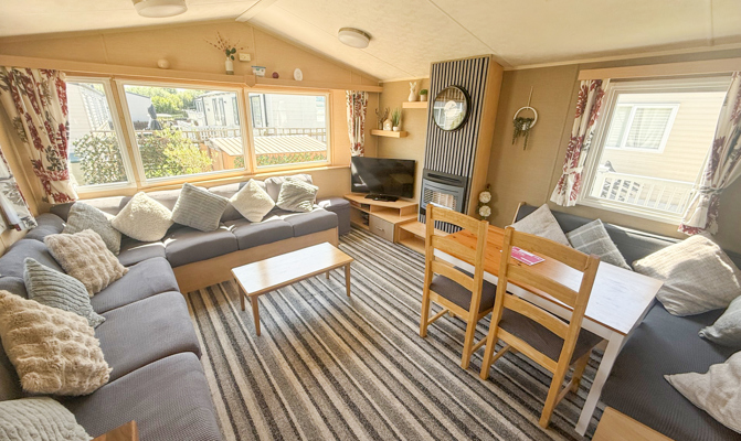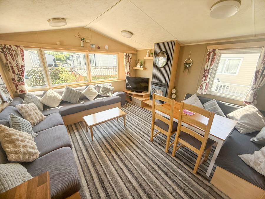 LOUNGE: The modern and spacious lounge is fitted with fixed comfortable seating for all the family and has a Flat screen TV, DVD and Free view player. Occasional pull-out sofa bed for extra guests.