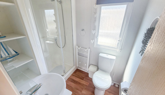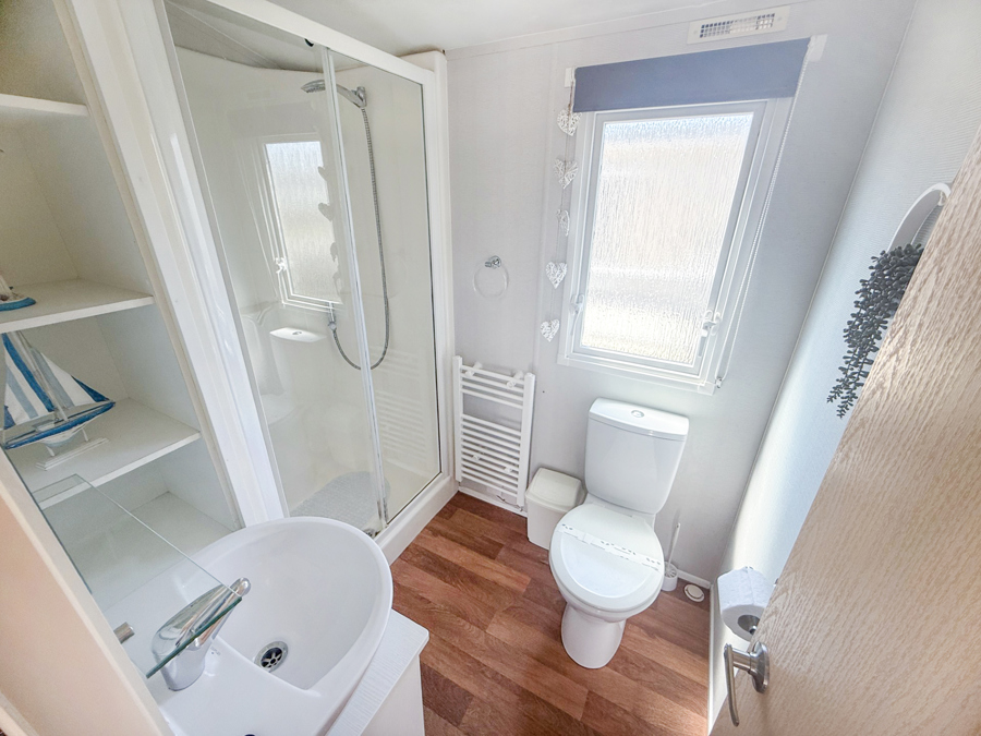 BATHROOM & TOILET: The bathroom has a double shower, toilet, wash basin and heated towel rail with corner shelf unit. 529 benefits from a separate toilet with wash basin.