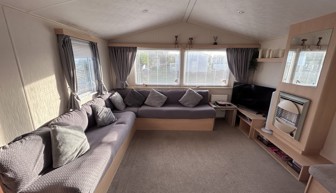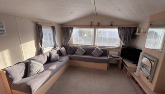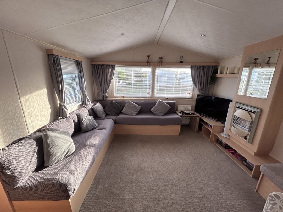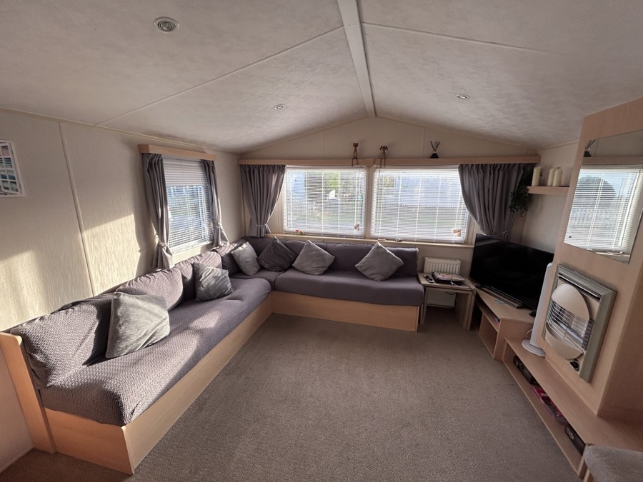 LOUNGE: This holiday home offers a spaciously open plan design, fixed corner sitting to cater for all the family, built in cabinets with flat screen TV, DVD and gas fire. The lounge benefits to an occasional pull-out bed for additional guests.