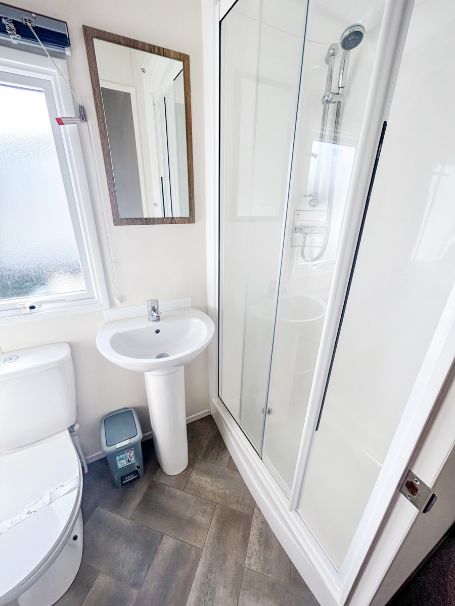 BATHROOM & TOILET: Shower cubicle, toilet and hand basin. 651 also has a separate toilet and hand basin as an en-suite in the master bedroom.