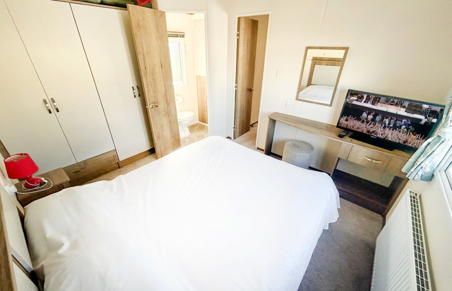 BEDROOMS: Double bedroom with double bed, wardrobe, en-suite toilet, bedside cabinets.