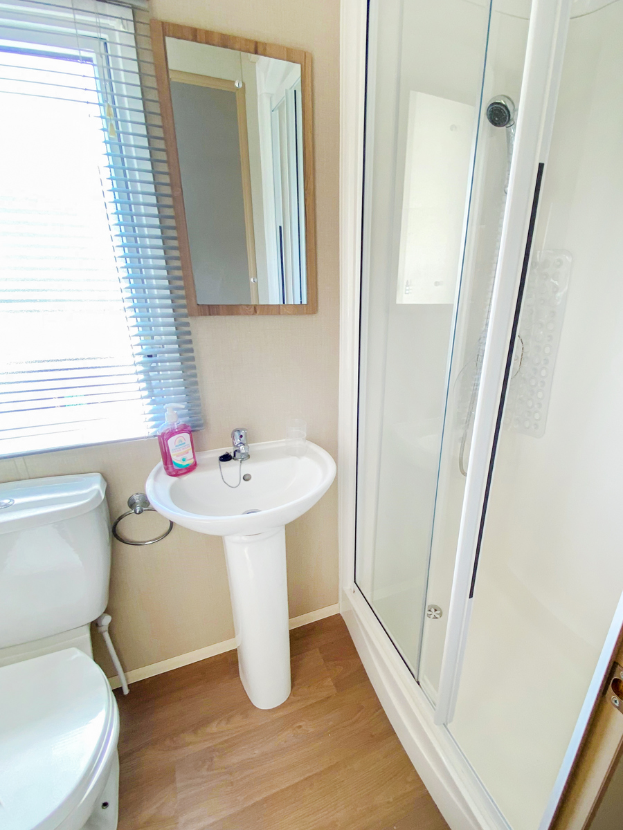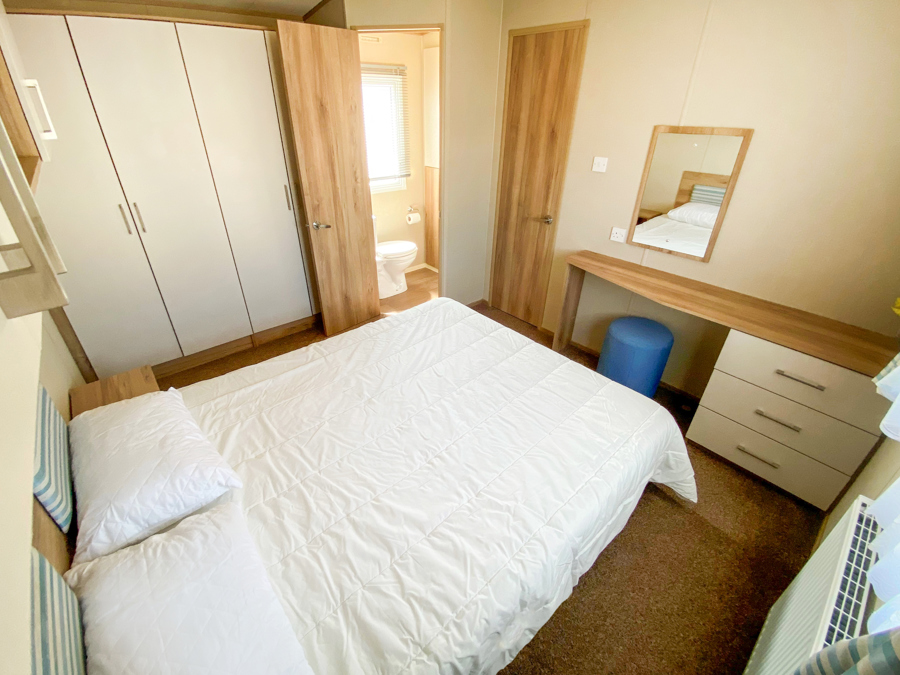 BEDROOMS: Spacious double, over bed storage, fitted wardrobe, en-suite toilet and hand basin. The master room has space for a travel cot.