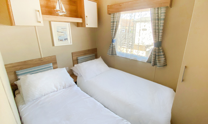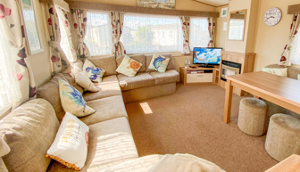 LOUNGE: Open plan with fixed L-shape seating, flat screen TV with Freeview and DVD player and gas fireplace. An occasional pull-out bed is available. D17 can sleep a maximum of 6 guests.